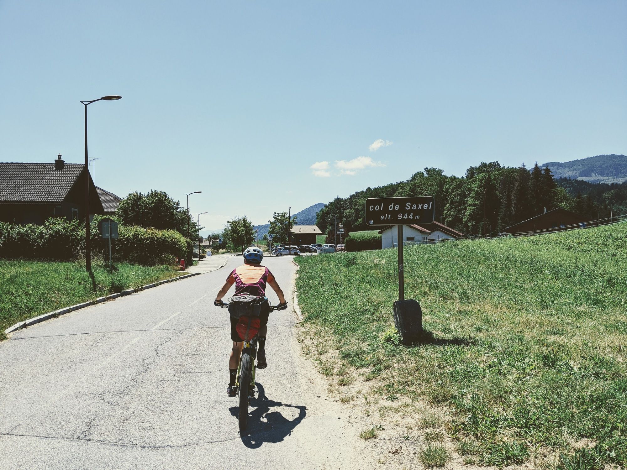 Our late start and meandering route also meant that we were also up against it in terms of finding some lunch. When we rolled into Bons en C, the first bakers we came to was pretty bare. Luckily the supermarket next door was open for another 5 minutes or so. We just about squashed the lump of cheese, pot of humus and bread into our bags and headed of up to the Col Saxel. We were pretty hungry by then, but could not find a place to stop for our middle classed lunch - we were too hung up on finding a nice spot, with good views, and a decent place to sit and so ended up riding a bit too long before stopping.
