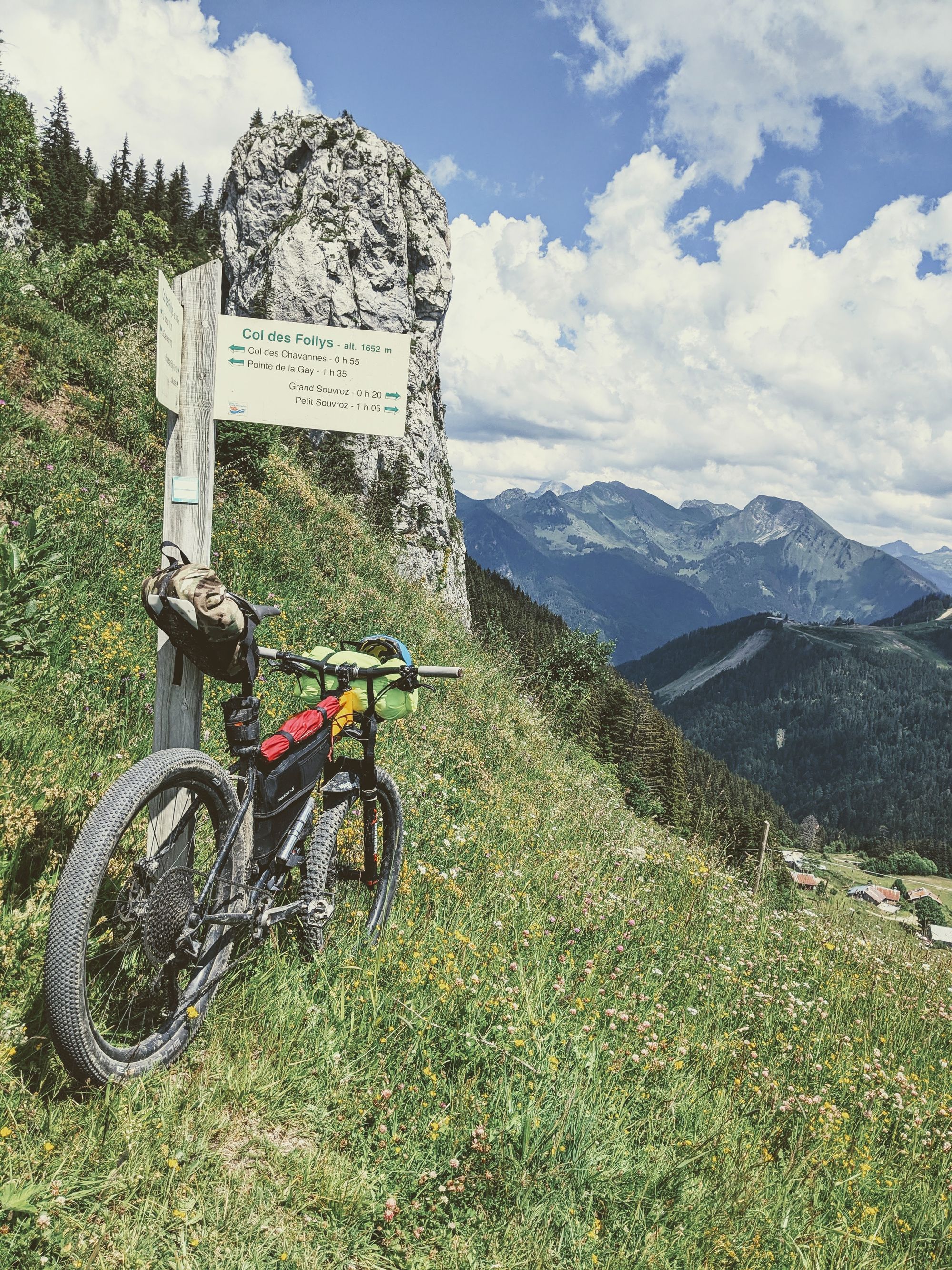 We had another 1,500m to climb but less than 40k to cover. Having slept up at 1,300m we had a much less arduous start to the day; a cracking singletrack down to Megevette. Then followed a pretty steady gravel climb before another great decent to Le Chevrerie. A proper Strava enduro segment. From there we were practically home: The ski area of Chevrerie is part of the Roc d'Enfer domain with la Grand Turche. A stiff climb followed by a savage push straight up a ski piste (I'm guessing a red run in the winter..) and we could smell home. A rattling run down to St Jean d'Aulps and just the river trail up to Morzine to finish. This bikepacking lark is proving to be addictive.